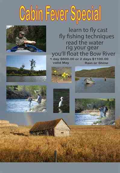 In recognition of "FIFTY" years guiding I am offering a "Prime Time" Special. During the month of July you can experience the BEST fly fishing on the Bow River while floating with me, Barry White, as your guide. The rate is $1200.00 per day (up to tw
